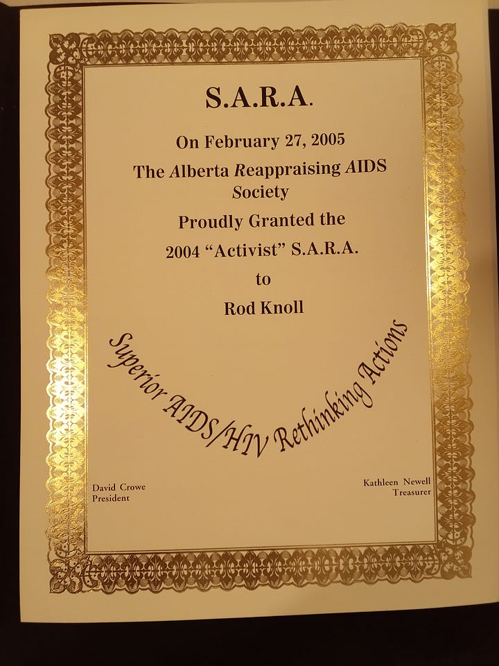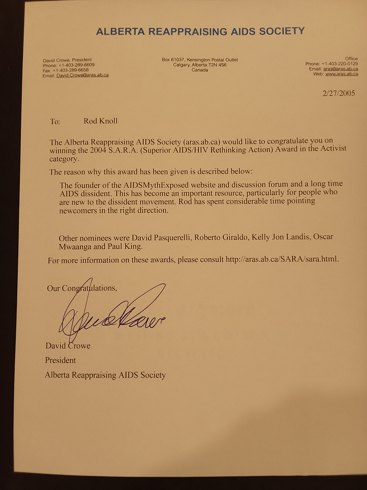 5. I also started and ran another "AIDS" dissident organization in Los Angeles for a little while in the early 2000s.