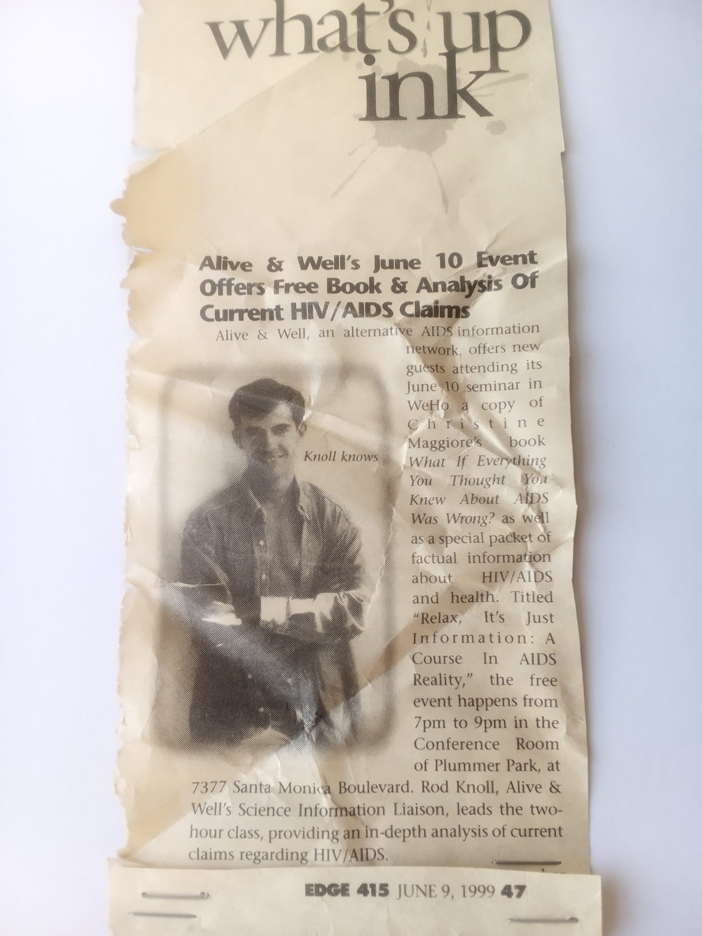 I laugh at this old "story" in the LA Weekly for several reasons. I refer to it as my "review" since the "reporter" said that I have a "breezy intellectual style"! Two months after this story appeared in the "LA Weekly", I changed the NAME of that organization I started (for reasons which I may explain at a later date). Here is a “news brief” from none other than POZ MAGAZINE (!) detailing- in a really SNOTTY tone, of course- the name change of that old organization: